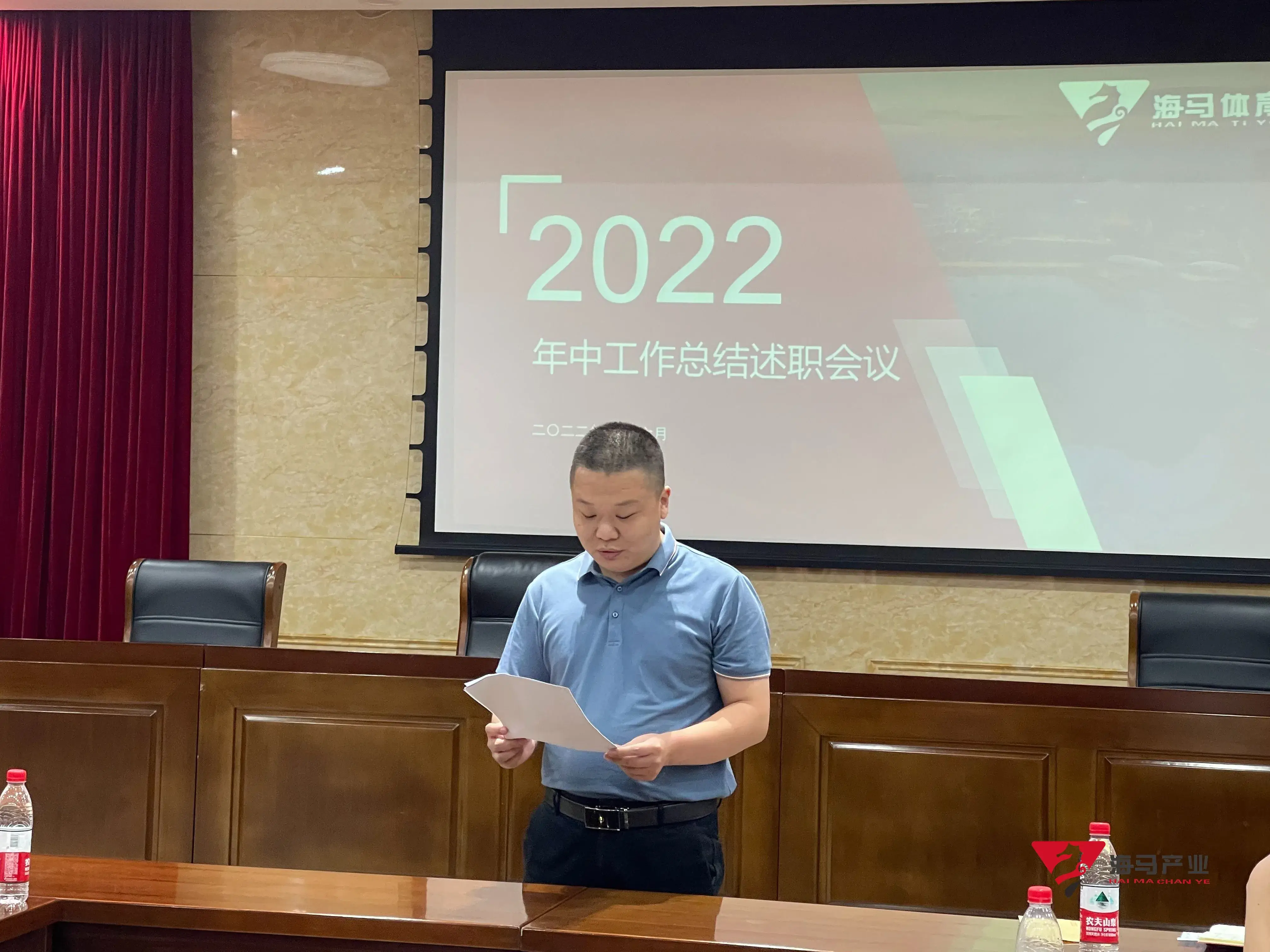 2022年6月29日下午,long8龙8文化产业集团在山东省体育中心二楼会议室召开年中工作总结述职会议,会议对上半年工作成果进行了总结汇报,并就下半年重点工作进行部署。总经理王海民出席了本次会议。会议由综合管理部负责人王永健主持。